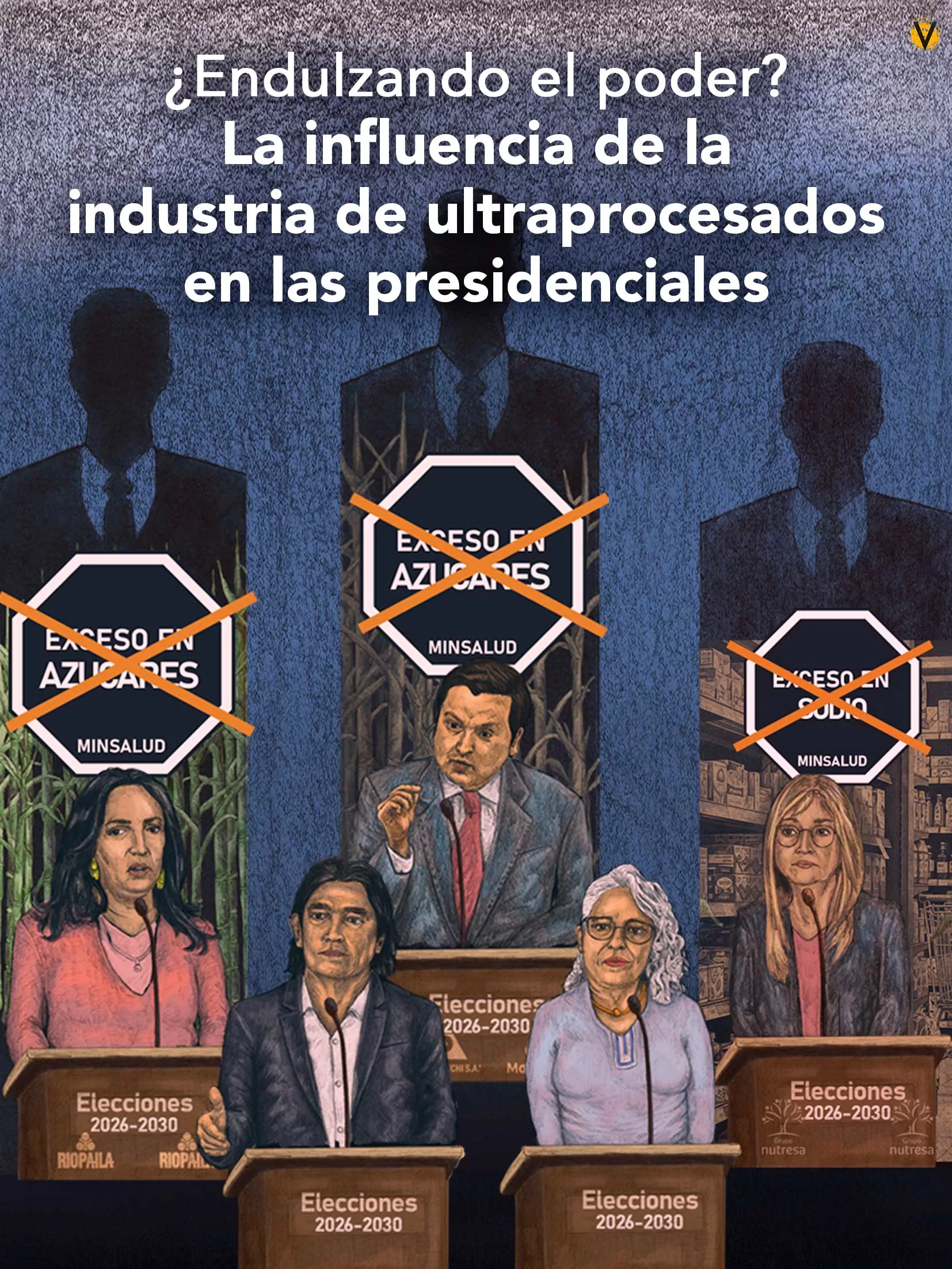 La política y la economía nacional han crecido casi de la mano, y uno de los sectores que mejor refleja esa simbiosis es el de los ultraprocesados. “La industria (de ultraprocesados) en todo el mundo es muy poderosa, pero en este país elige políticos. Elige senadores, representantes, toda clase de políticos”, advierte el nutricionista Juan Camilo Mesa. Por eso, de cara a las elecciones presidenciales de 2026, VORÁGINE rastreó y examinó los vínculos de algunos candidatos con esta industria y las implicaciones que tendría su eventual llegada al poder.