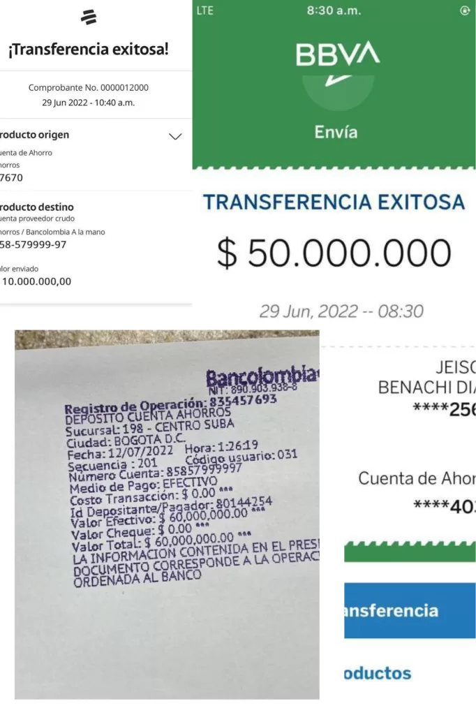 A finales de 2023, viendo que el proyecto no daba resultados y que Benachi comenzó a evadirlos, algunos de los socios decidieron denunciarlo por estafa ante la Fiscalía. En el proceso, que está abierto, varios de ellos relatan que le dieron 160 millones de pesos, para lo cual aportan copias de recibos de consignación a las cuentas de Benachi y de algunos de sus familiares, girados a diferentes bancos, entre junio y julio de 2022.