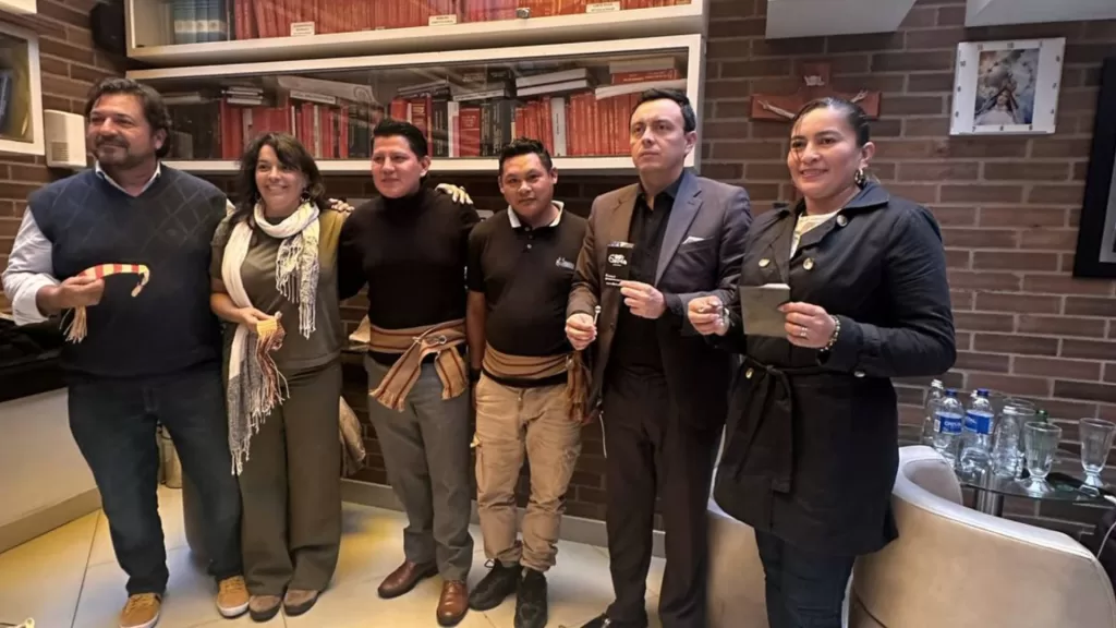 En un coworking ubicado en pleno centro de Bogotá, seis personas posan alegres para una foto. Es comienzos de febrero de 2025. Dos empresarios argentinos muestran coloridas manillas hechas por los indígenas Nukak, el último pueblo nómada en haber sido contactado en la Amazonía colombiana, hoy en peligro de extinción. En el centro de la instantánea sobresalen Joaquín Nijbe, el abubaka (representante legal) de los nukak, un hombre de baja estatura y rollizo, y a su lado está Jeison Benachi, fundador de la empresa Innova Green y entonces presidente del partido Movimiento Alternativo Indígena y Social -MAIS- en el Guaviare. Los dos lucen cinturones artesanales argentinos.