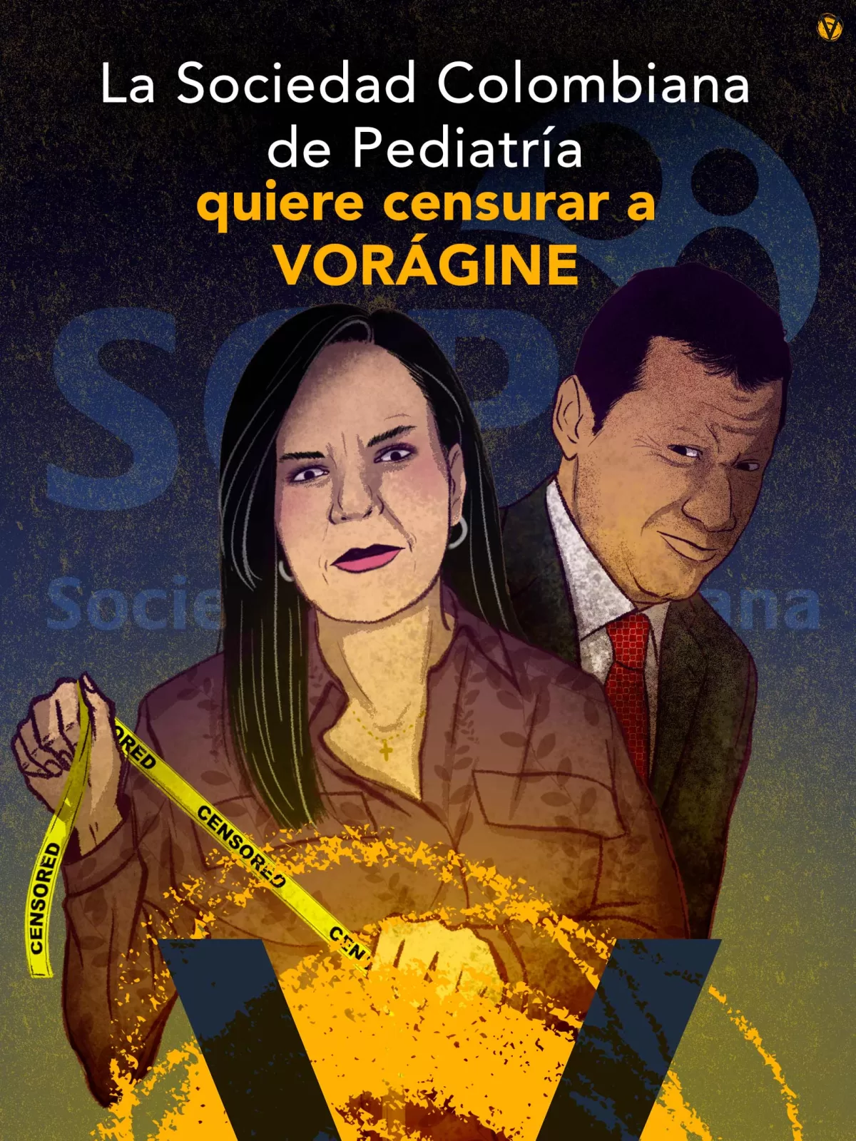 La directora ejecutiva de la Sociedad Colombiana de Pediatría (SCP), Gloria Helena Zuccardi Hernández, y el presidente de esa organización, Mauricio Javier Guerrero Román, pretenden censurar a VORÁGINE, mediante un acoso judicial.